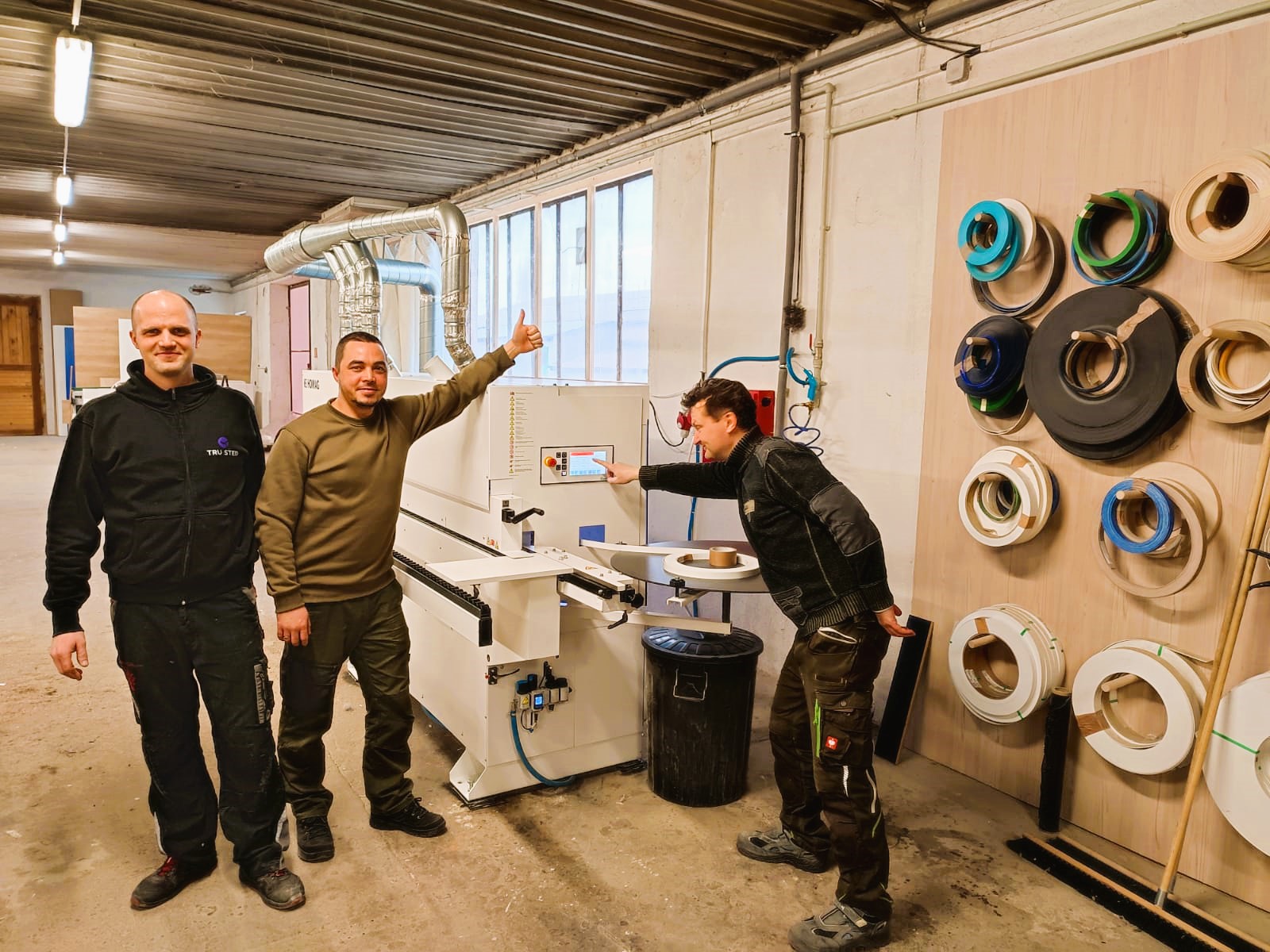Vedoucí výroby firmy TRU-STED se zodpovědně chopil výběru nového olepovacího stroje, a po návštěvě v EPIMEXU, kde jsme mu předvedli perfektní výsledek olepení na stroji HOMAG EDGETEQ S-200 ve verzi 1120, bylo o výběru jasno. Při té příležitosti jsme se postarali i o seřízení formátovací pily Robland, kterou již několik let spokojeně používají. Stroj předáváme spokojeným a nadšeným pracovníkům, kteří vyrobí kvalitní produkty, jež budete pravidelně vídat na veletrzích a výstavách nejenom v ČR.