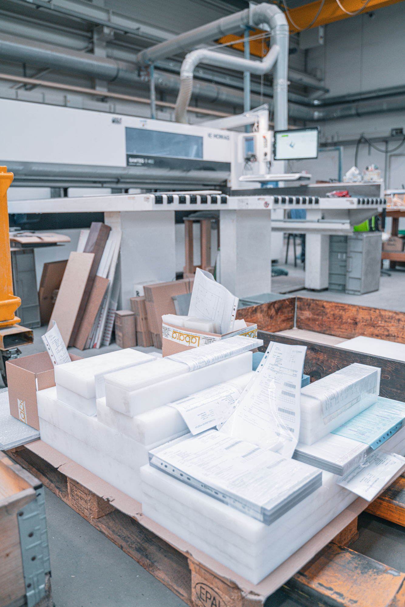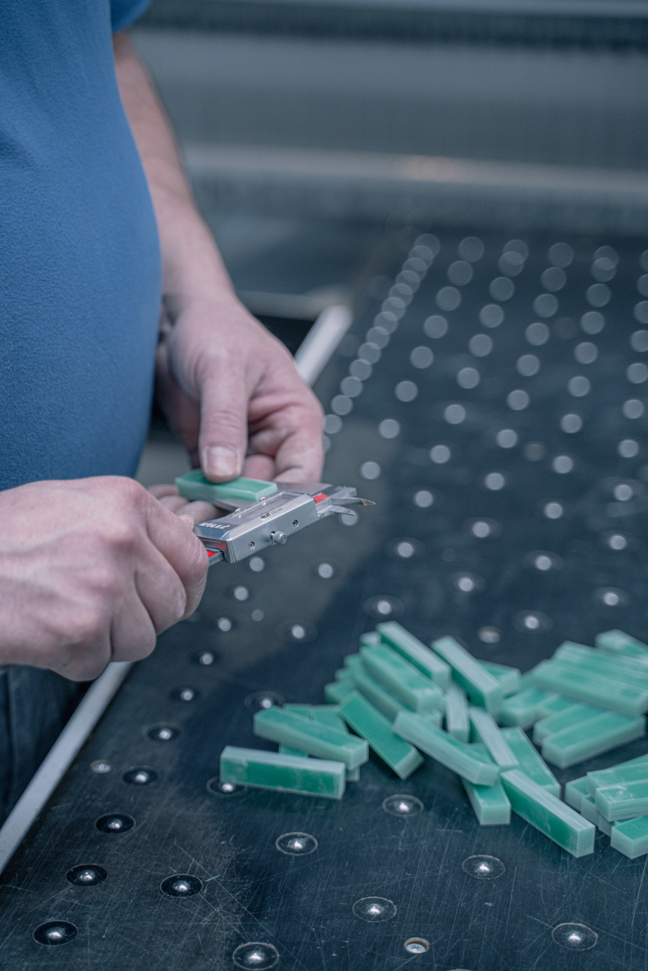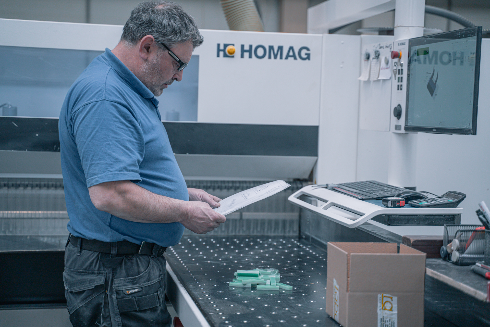 Velkoplošné pily HOMAG patří mezi špičku v oblasti řezání plastů. Tyto stroje jsou známé svým vysokým výkonem, jednoduchou obsluhou a neuvěřitelnou rychlostí. Pro firmu Labara je však klíčovou předností jejich přesnost, která dosahuje hodnot do 0,2 mm. Tato úroveň preciznosti je nezbytná především při řezání extrémně tenkých plastových kousků, které firma využívá pro své elektroizolační produkty. Pily jsou v náročných podmínkách výroby prověřovány každý den a požadavky na přesnost desetiny milimetru je potřeba udržet dlouhodobě, což se strojům HOMAG daří. Na menší přířezy potom výroba používá také prémiovou formátovací pilu MARTIN T66.